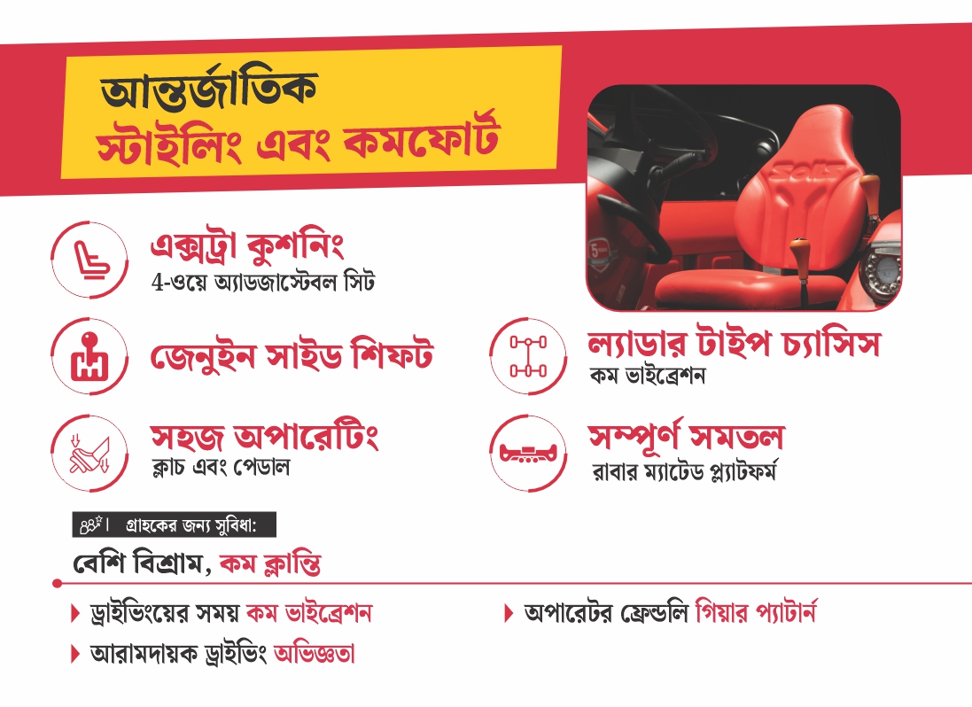 পরিষেবার মধ্যে রয়েছে প্রতি ৫০০ ঘণ্টায় ইঞ্জিন অয়েল পরিবর্তন, প্রযুক্তিগত সহায়তা, প্রশিক্ষণ এবং রক্ষণাবেক্ষণ—যা প্রতিটি সোলিস ট্র্যাক্টর মালিকের জন্য সর্বোচ্চ কর্মক্ষমতা ও নির্ভরযোগ্যতা নিশ্চিত করে।